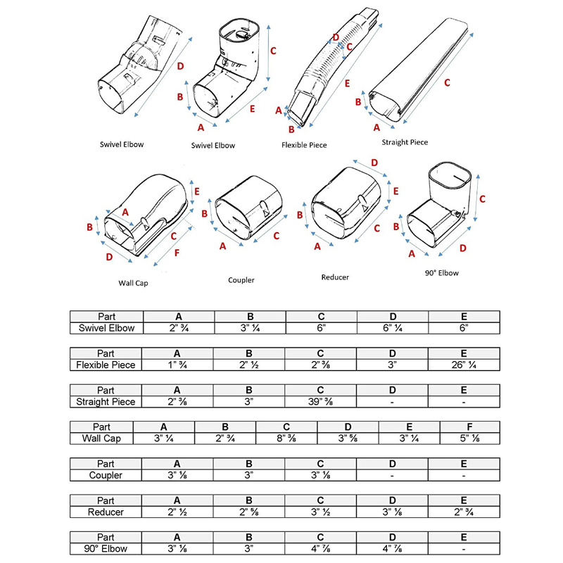 4.Parts included – Straight, hose, wall cover, flat elbow, elbow, coupling.